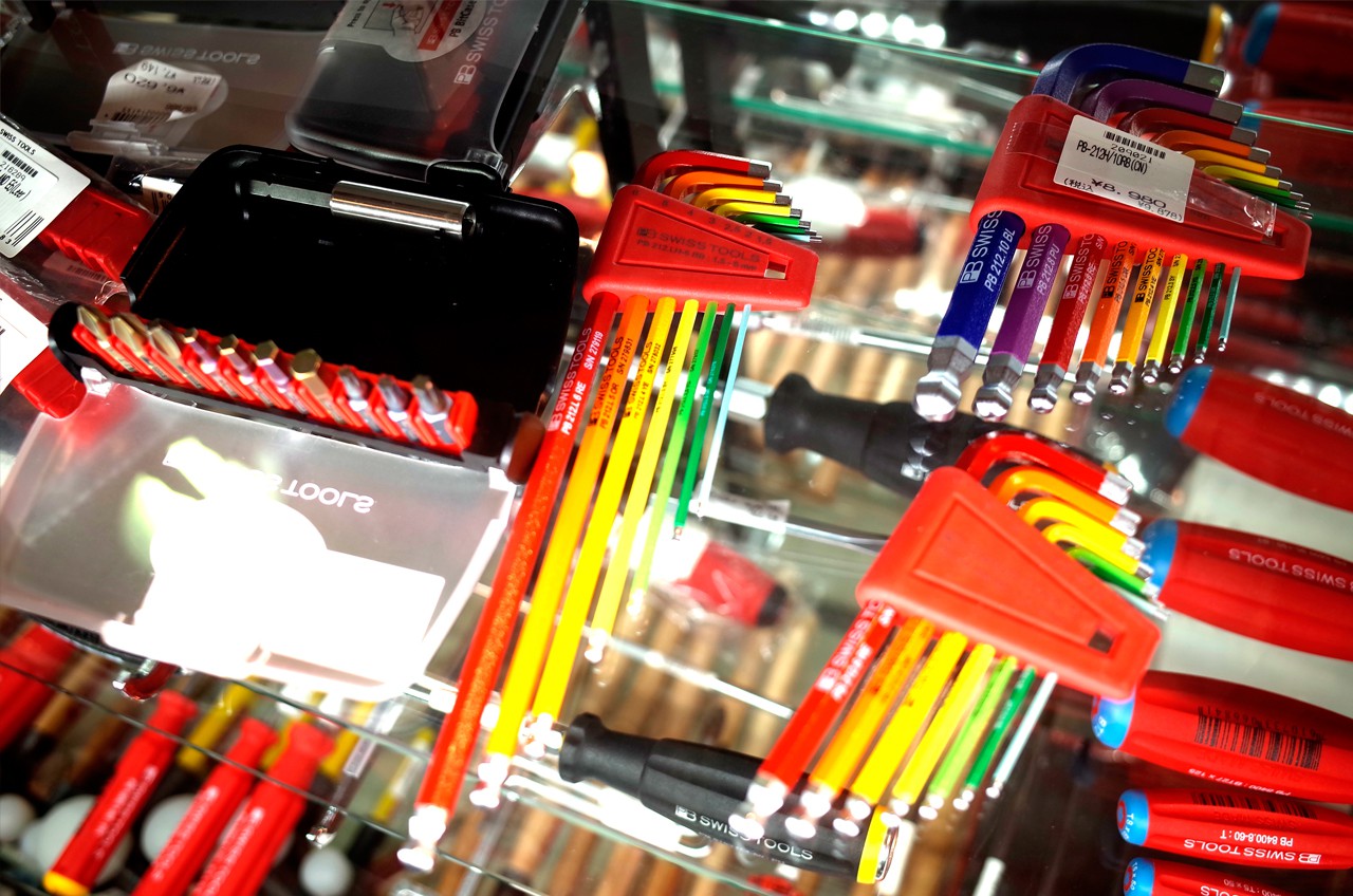 ▲輸入車ではポジドライブが必要な箇所も。一見プラスのようですが、よーく見ると“※”のようなミゾがあるので、ポジにはポジのドライバーを使いましょう。最近ではIKEAの組み立て家具のために購入しに来る人も多いのだとか!
