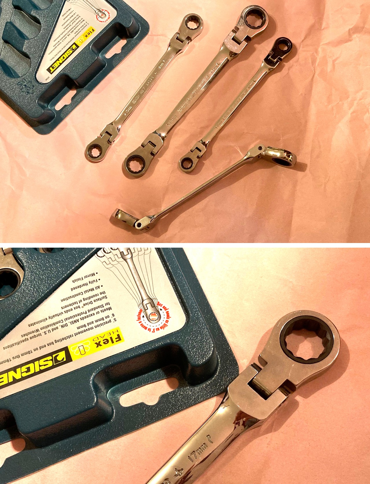 ただしスパナ・ギアメガネともにオフセット角ゼロ。よってフラットなところでの作業は苦手です…。