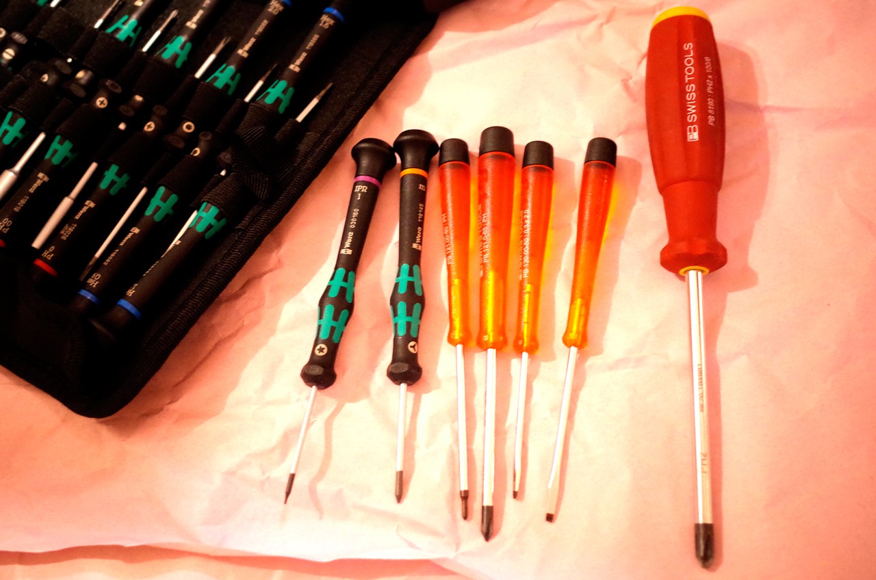 ▲Wera クラフトフォームグリップ電子機器用ドライバー25本セット(海外購入で約¥15,000)、PB SWISS TOOLS 精密ドライバー4本セット(約¥3,000弱)
