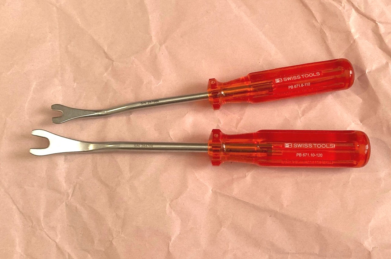 ▲PB SWISS TOOLS マルチクラフトグリップピックツール125°(約¥900)、『ネジすべり止め液』を常備しておくと、ちょっとフィッティングが悪いネジの対処に役立ちます