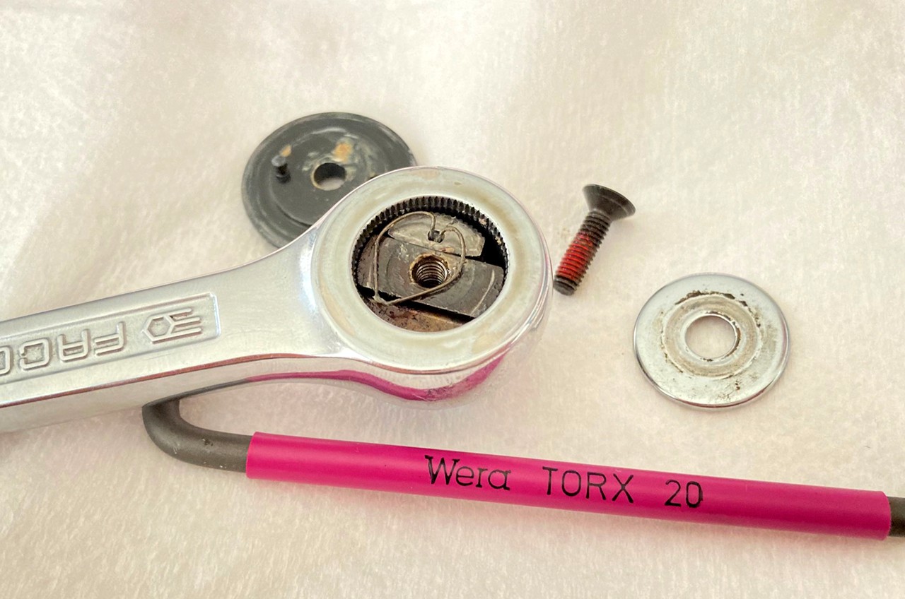 メンテナンスのされていないラチェットは空転するわ、ドライバーは先端が摩耗しているわで、作業性はイマイチ。