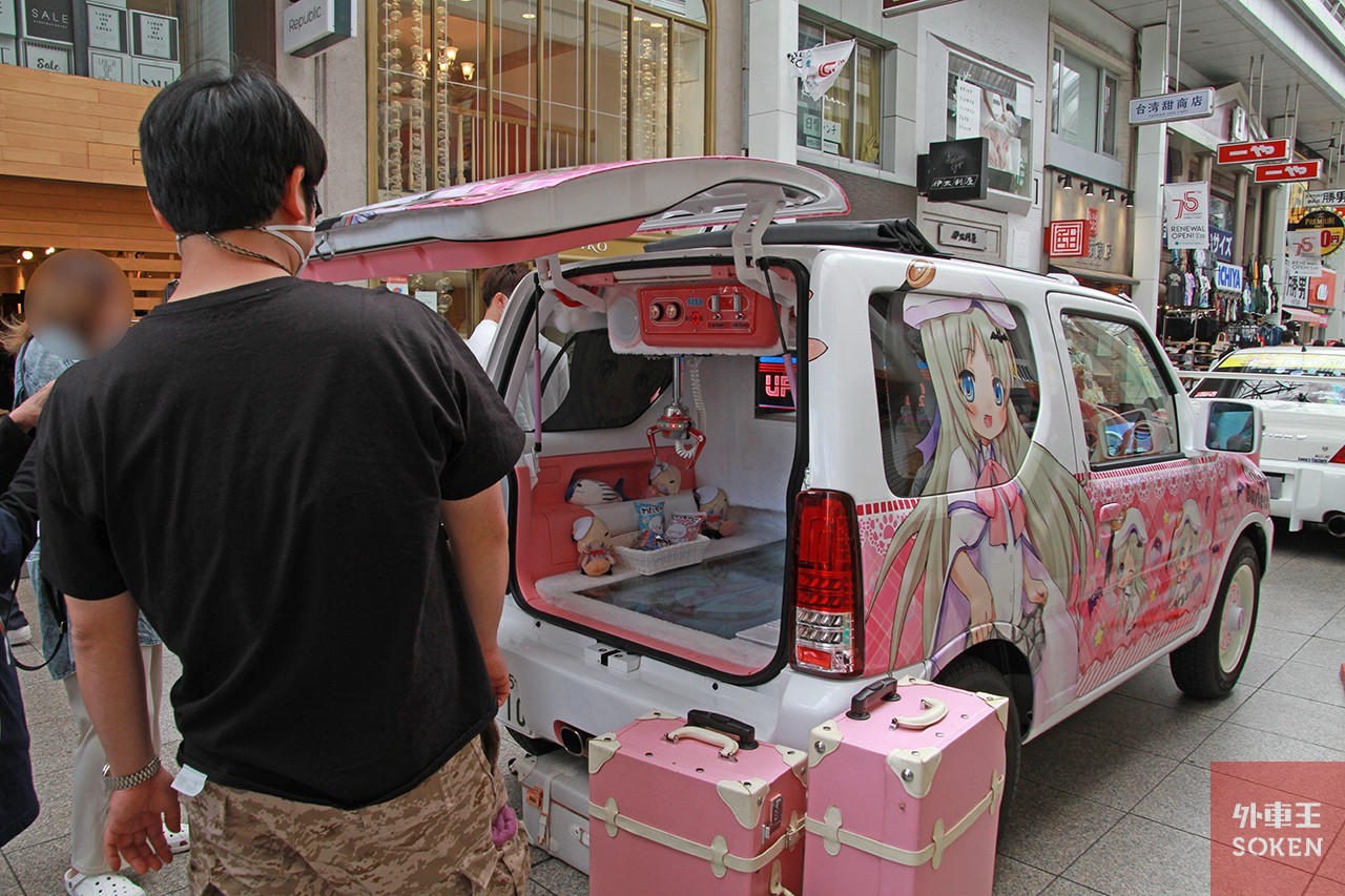 ▲UFOキャッチャーにカスタムされた「痛車」が子どもたちに大人気!