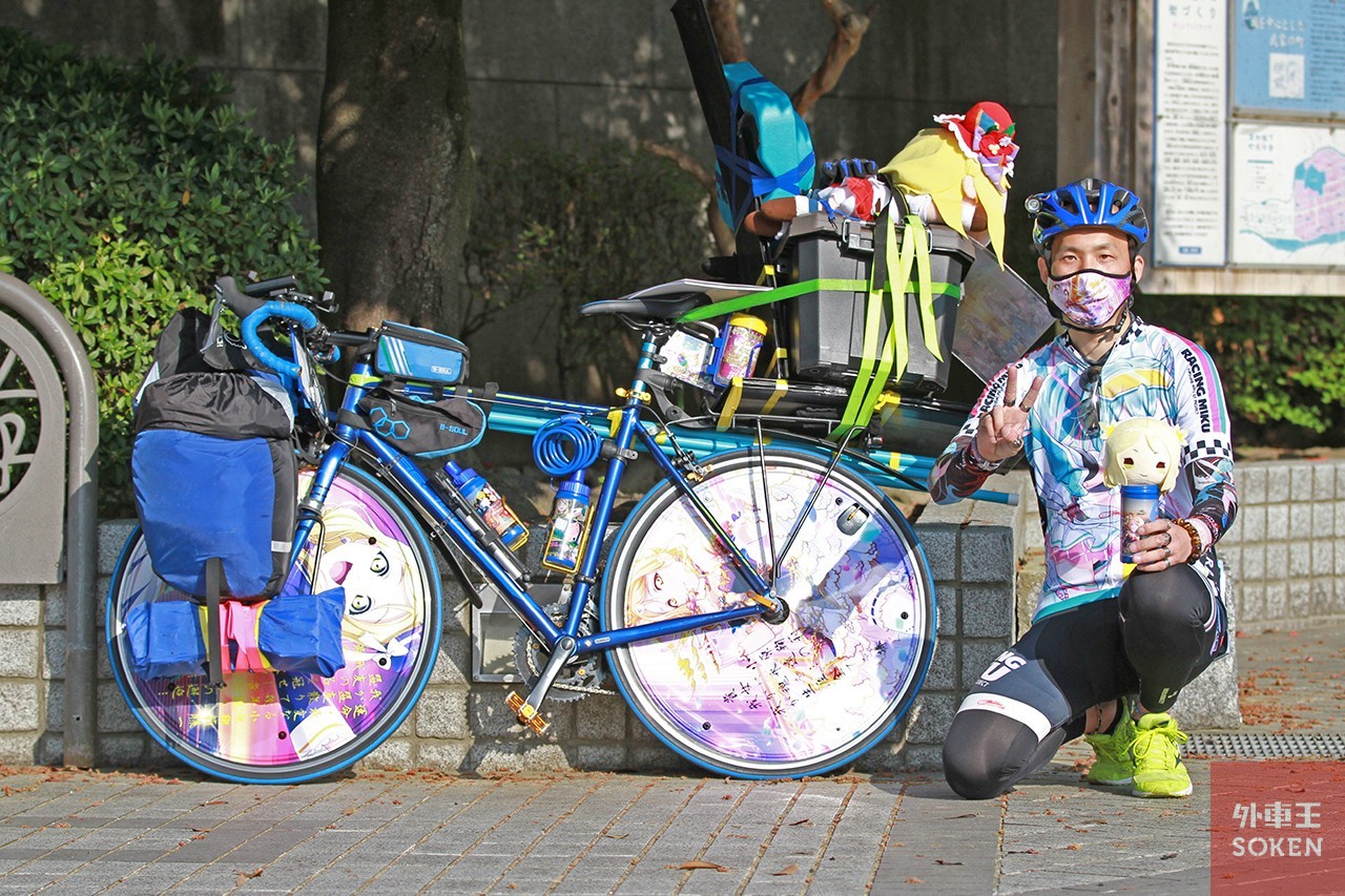 ▲「ラブライブ!サンシャイン!!」のキャラクター小原鞠莉に惚れ込み、愛車とユニフォーム、マスクまで小原鞠莉一色
