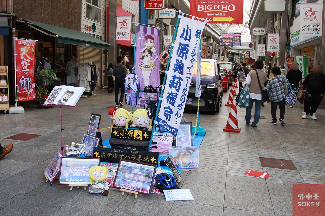 ▲「痛チャリ」としてカスタムされた愛車をはじめ、推し活のヒストリーや、小原鞠莉への想いを表現した制作物を展示。交流用ノートにメッセージも残せる