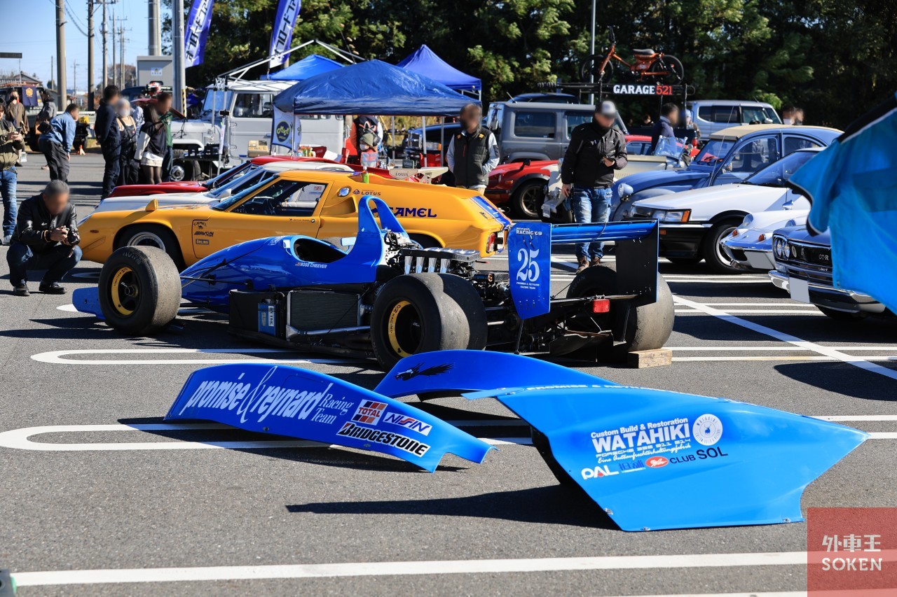 旧車王ヒストリアでお馴染みの「CBR WATAHIKI」さん。今回は本物のF3000マシンである「レイナード93D」を展示。カウルを外してエンジンやサスペンションなど、間近で見られる貴重な機会となったのです。本物のフォーミュラカーのカウルの軽さに驚いていたギャラリーも。